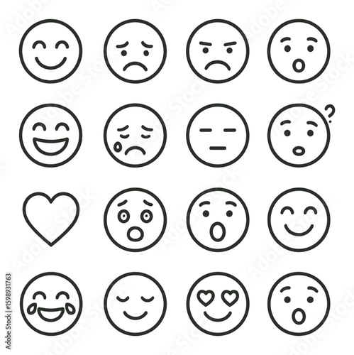 icon, linear, smile, frown, anger, surprise, love, tear, neutral, curiosity, joy, admiration, emotion, face, expression, set, happy, sad, question, nubes, simplistic, signs, digital, art, design, graphic, outline, mood, collection, feeling, emoticon, minimalist, line, simple, symbol, creative, cartoon, drawing, vectorial, aesthetic, monochrome, template, communication, interface, pictogram, representation