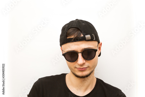 sunglasses, young, portrait, goggles, guy, photogenic, isolated, boy, white, face, fashion, cool, black, person, jacket, serious, shirt, people, casual attire, man, looking, expression, look, model, leather
