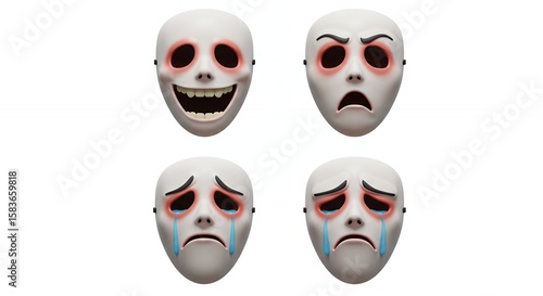 mask, white, emotion, happy, sad, angry, crying, facial, expression, theatre, costume, character, illustration, design, symbol, drama, image, isolated, studio, still life, graphic design, art, texture, copy space, digital artwork, graphic