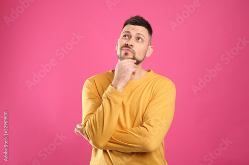 choose, yellow, outfit, confused, emotion, expression, entrepreneur, job, professional, business, emotional, pink, caucasian, man, male, adult, pensive, thoughtful, thinking, hipster, question, solve, idea, plan, work, hair, contemplate, unknown, decision, mind, problem, thinks, why, response, query, interrogation, identity, doubtful, ask, doubt, analysis, crisis, future, question, casual attire, portrait, face, lifestyle, background, person