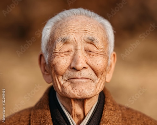 Emotional Portrait of Inner Peace Elderly Man's Expression of Calmness Natural Setting