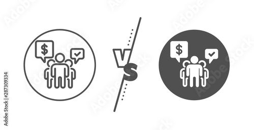 Employees chat sign. Versus concept. Teamwork line icon. Core value symbol. Line vs classic teamwork icon. Vector