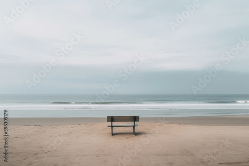 bench, beach, sea, horizon, nature, sky, travel, landscape, sand, ocean, view, vacation, water, blue, colours, sunset, nobody, moody, relax, beautiful, coast, seat, empty, scene, seascape, background, minimalism, relaxation