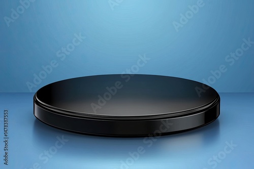 dais, black, circular, empty, round, stage, display, product, presentation, exhibition, modern, minimalist, design, geometric, surface, show, platform, background, blue, light, glossy, smooth, three-dimensional, realistic, rendering, studio, advertising, promotion, retail, commerce, marketing, showcase, featured, elegant, industrial, simple, technology