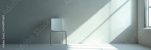 chair, empty, room, light, sunlight, shadow, wall, white, minimalist, simple, interior, design, furniture, monochrome, modern, bright, roomy, solitude, quiet, isolated, peaceful, serene, calmness, relaxation, architecture, indoor, nobody, daylight, corner, perspective
