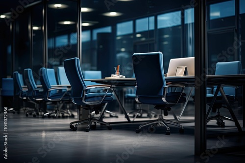 conference, room, office, chair, desk, table, empty, modern, business, meeting, corporate, chair, dark, interior, glasses, steel, workspace, professional, executive, minimalist, contemporary, clean, furniture, elegant, design, architecture, style, sleek