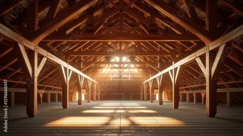 empty, construction, attic, radiant, barrier, fully, installed, under, roof, showing, wooden, rafter, panel