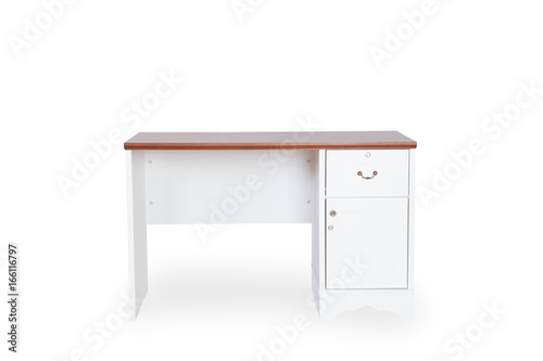 Empty desk isolated on white background with space for copy.