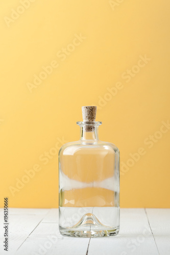 bottle, container, glasses, small, storage, crockery, cutlery, tableware, kitchen utensile, kitchen, food, serving, yellow, blue, white, organic, natural, cooking, empty, table, background, wall, wood, cardboard box, emboss, photo, vertical, cork, liquid, drink, embossed, figured, rum, alcohol