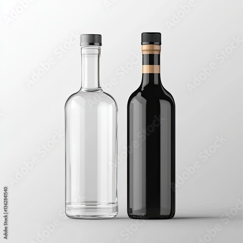 bottle, glasses, empty, design, clear, dark, black, wine, spirit, alcohol, cardboard box, transparent, modern, product, illustration, display, branding, studio, lighting, simple, clean, graphic, optical, presentation, digital, rendering, three-dimensional, realistic, advertising, promotional