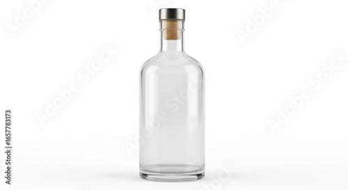 Empty Glass Liquor Bottle with Cork and Metal Cap