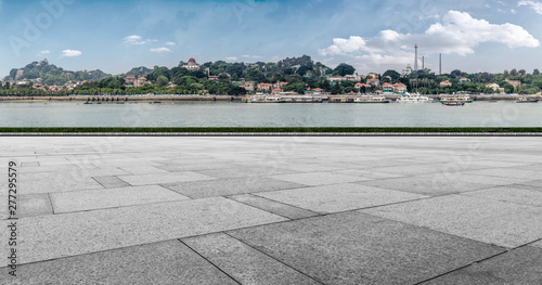 Empty Ground Bricks Xiamen Urban Architectural Skyline..