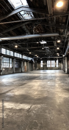 industrial, warehouse, empty, interior, metal, concrete, floor, ceiling, beam, window, light, grey, dark, large, space, open, loft, structural, steel, building, factory, room, abandoned, rustic, vintage, modern, retro, architecture, design, commercial, vacant, urban, raw, light, shadow, perspective, wide, long