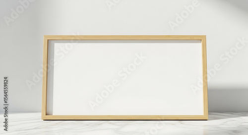 frame, wooden, beige, light, empty, blank, white, picture, marble, surface, display, poster, canvas, design, minimalist, modern, neutral, empty space, photo, art, decoration, interior, room, still life, simple, background, shadow, texture, natural, elegant, subtile, presentation