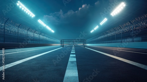 Empty race track at night under bright lights