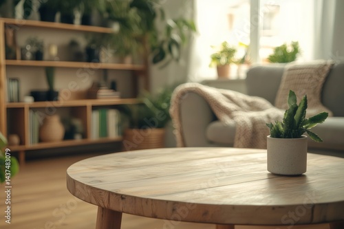 living room, coffee table, wood, table, plant, interior design, home decor, cosy, houseplant, furniture, apartment, home, interior, decoration, design, room, comfortable, lifestyle, sofa, couch, bookshelf, shelf, window, natural light, daylight, succulent, pot, empty space, template, background, domestic life