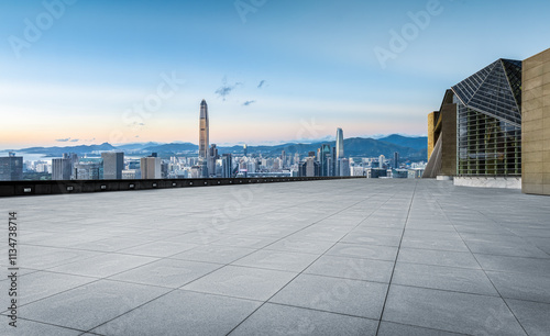 Empty square floor and cityscape with skyline in modern city