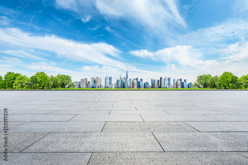 Empty square floor and panoramic city skyline with buildings in shanghai
