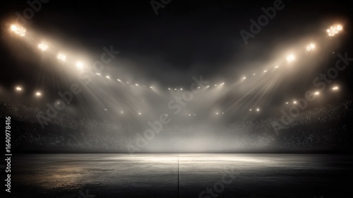 empty, stadium, arena, bright, light, event, spotlight, stage, fog, mist, dark, night, sport, competition, background, space, architecture, building, illuminated, crowd, abstract, texture, concert, performance, show, entertainment, field, ground, design, template, nobody, blank, promotion, product, advertisement, marketing, presentation