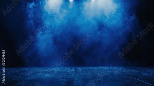 modern, texture, illumination, scene, contemporary, room, floor, stage, presentation, dark, space, empty, display, interior, smoky, spotlight, lighting, blue, background, effect, product, design, illuminated, wooden, performance, ambience, smoke, atmosphere