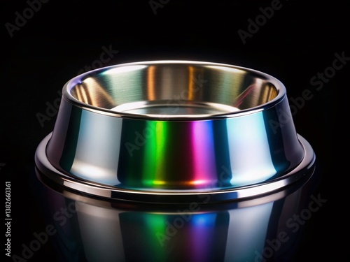 black background, isolated, studio shot, clean, modern, minimalist, chrome, silver, bowl, pet, animal, dog, cat, puppy, kitten, feeding, drinking, food, water, supply, accessory