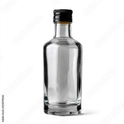 bottle, glasses, transparent, empty, drink, alcohol, beverage, container, clear, isolated, white background, studio shot, object, product, design, cardboard box, bar, liqueur, spirit, vodka, presentation, commercial, advertisement, still life, closeup, half face, minimalism, white, liquid, medicine, water, brown, green, blank, wine, nobody, health, medicals, cap, oil