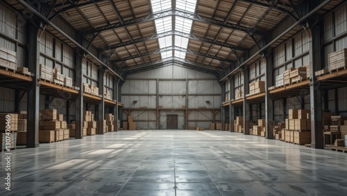warehouse, interior, industrial, empty, storage, space, building, modern, large, structure, daylight, light, bright, facility, logistic, good, box, shelf, rack, concrete, floor, metal, steel, roof, sunlight, architecture, design, commercial, empty space, industrial building, manufacturing, distribution, inventory, freight, shipping, transportation, business, product, interior design