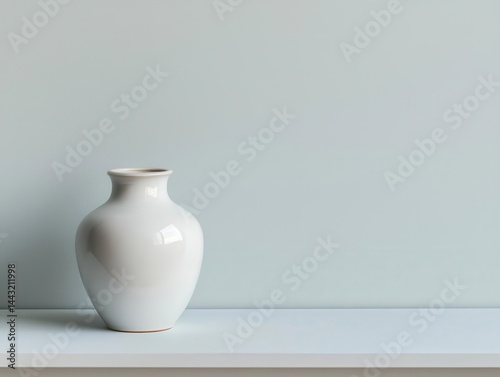 Empty white shelf with only a single vase, decluttered and peaceful living