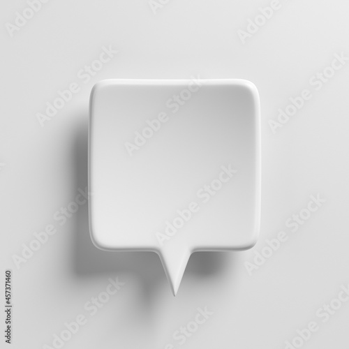 Empty white volumetric square speech bubble with shadows on white background. 3D rendering