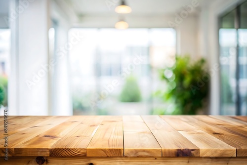 Empty wood tabletop or counter with display product. Blur image green,light background. Display product background concept