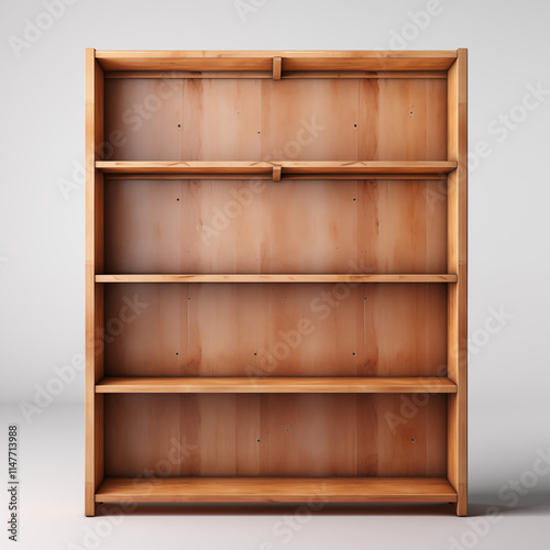 Empty Wooden Bookshelf Four Shelves Light Wood Studio Shot