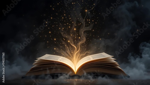 book, open, page, magic, glowing, light, gold, sparkle, smoke, mystical, enchanted, fantasy, art, antique, vintage, whimsical, dreamlike, dramatic, aethereal, spiritual, powerful, serene, magical, mystery, wisdom, cognition, storytelling, literature, reading, imagination, wonder, beauty, artistic, creative, illustration, photo, design, image, visual, graphic, print, publication, commercial, royalty