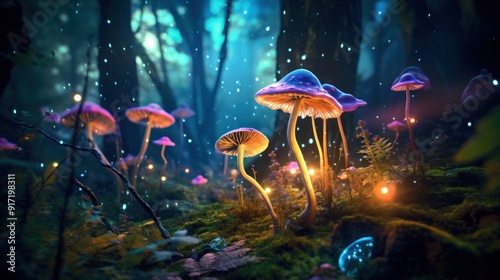 mushroom, forest, fantasy, enchanted, magic, glowing, fairy, nature, tree, night, dark, dreamy, mystical, magical, light, sparkle, underbrush, foliage, moss, glow, green, blue, purple, pink, deep, wood, timberland, fairy tale, illusion, wonderland, fable, myth, legend, whimsical, surreal, artistic, photo