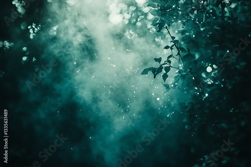 foggy, nature, leaf, tree, mystical, dark, green, silhouette, light, glowing, sparkle, forest, atmosphere, dreamy, magical, mystery, night, wood, beauty, colours, texture, smoky, ambience, depth, fantasy