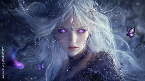 fantasy, empress, anime, fairy, wing, purple, glow, mystical, aethereal, enchanted, magical, warrior, queen, princess, dark, gothic, sorceress, elegant, light, dreamlike, character, beautiful, mythical, majestic, supernatural, eye, power, sparkle, aura, girl, butterfly, crown, strong, enchantress, darkness, violet, royalty, powerful, stunning, surreal, imagination, fierce, heroin, fantasy art, elf, fairy tale, beauty, model