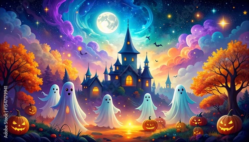 Enchanted Halloween Night: Ghosts and a Mystical Castle