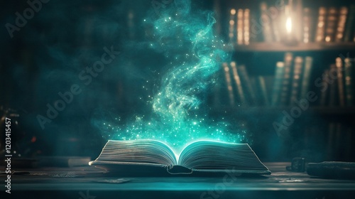 Enchanted Workspace, a whimsical desk adorned with magical stationery, a glowing spellbook, perfect for creative inspiration and homework.