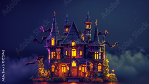 Enchanting 3D Cartoon Haunted Castle with Bats, Masterpiece