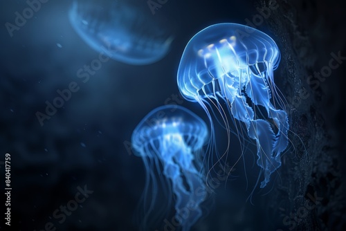 enchanting, glowing, jellyfish, fantasy, magical, mystical, underwater, marine life, glow, phosphorescent, aethereal, aglow, oceanic, cavern, illuminated, creature, darkness, magic, mysterious, dreamlike, enchantment, fantastical, incredible, brilliance, radiant, haunting, mesmerizing, wonder, fiction, imagination, surreal, adventure, beautiful, visual, shine