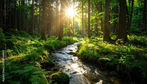 forest, river, sunlight, tree, nature, landscape, stream, water, green, environment, wood, peaceful, serene, flowing, idylli, moss, vegetation, foliage, wilderness, growth, ecosystem, scenic, timberland, calmness, sunbeam, outdoors, natural, fresh, summer, spring, cascade, stone, pathway, adventure, explore, hiking, journey, wild, background, harmony, botanical, refreshing, untouched
