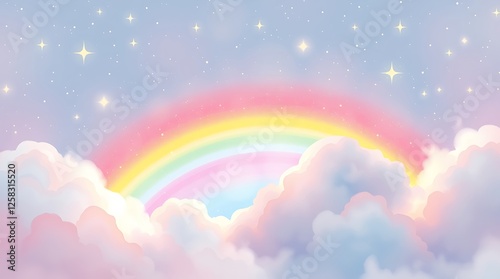 Enchanting Holographic Background with Rainbow Clouds and Stars