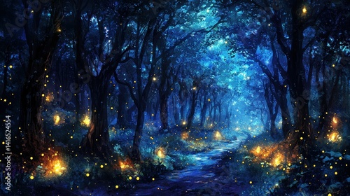 forest, night, path, magical, glowing, tree, star, moon, fantasy, light, nature, dark, blue, pathway, mystical, adventure, fairy, luminescent, sparkling, illuminated, beautiful, landscape, artwork, digital, painting, wood, evening, magic, mysterious, enchanted, imagination, peaceful, serene, calm, dreamlike, whimsical, explore