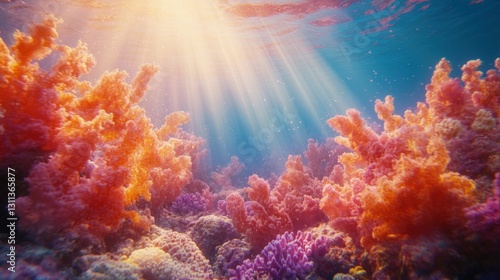 Enchanting underwater coral reef with sunlight rays