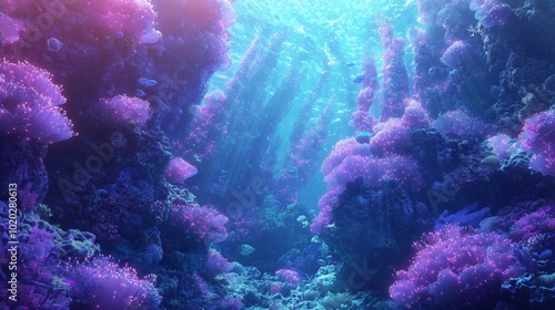 underwater, ocean, sea, coral, reef, marin, aquatic, nature, landscape, seascape, colourful, vibrant, abstract, surreal, fantasy, aethereal, glowing, lighting, ray, bubble, texture, pattern, environment, ecosystem, life, biology, science, adventure, beauty, wonder, deep, blue, pink, purple, green, turquoise, kelp, algae, fish, wildlife, discovery, tranquil, serene, mysterious, enchanting, captivating, dreamlike, imaginative