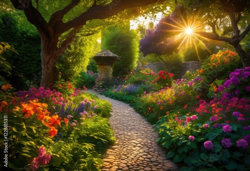 enchanting vibrant garden pathways surrounded lush greenery offering scenic natural beauty inviting ambiance outdoor enthusiasts, landscape, flora, scenery