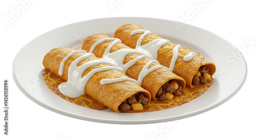 Enchilada Elegance Creamdrizzled rolls on a pristine plate