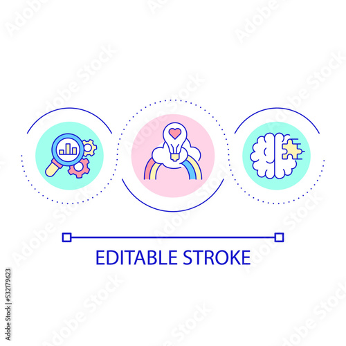 Encouraging creativity in workplace loop concept icon. Innovative decisions and tasks solutions abstract idea thin line illustration. Isolated outline drawing. Editable stroke. Arial font used