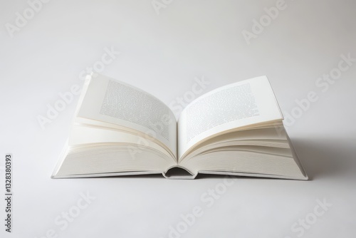 Endless Possibilities: A Minimalist Hardcover Book with Crisp White Pages Symbolizing Knowledge and Creativity – A Timeless Composition Enhanced by Studio Lighting and High-Contrast Details
