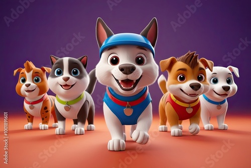 Energetic 3D Cartoon Animal Team Active Fun Pets