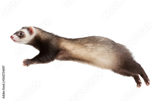 ferret, animal, mammal, pet, domestic, carnivore, weasel, polecat, fur, brown, running, jumping, leaping, active, playful, cute, adorable, studio, isolated, transparent, background